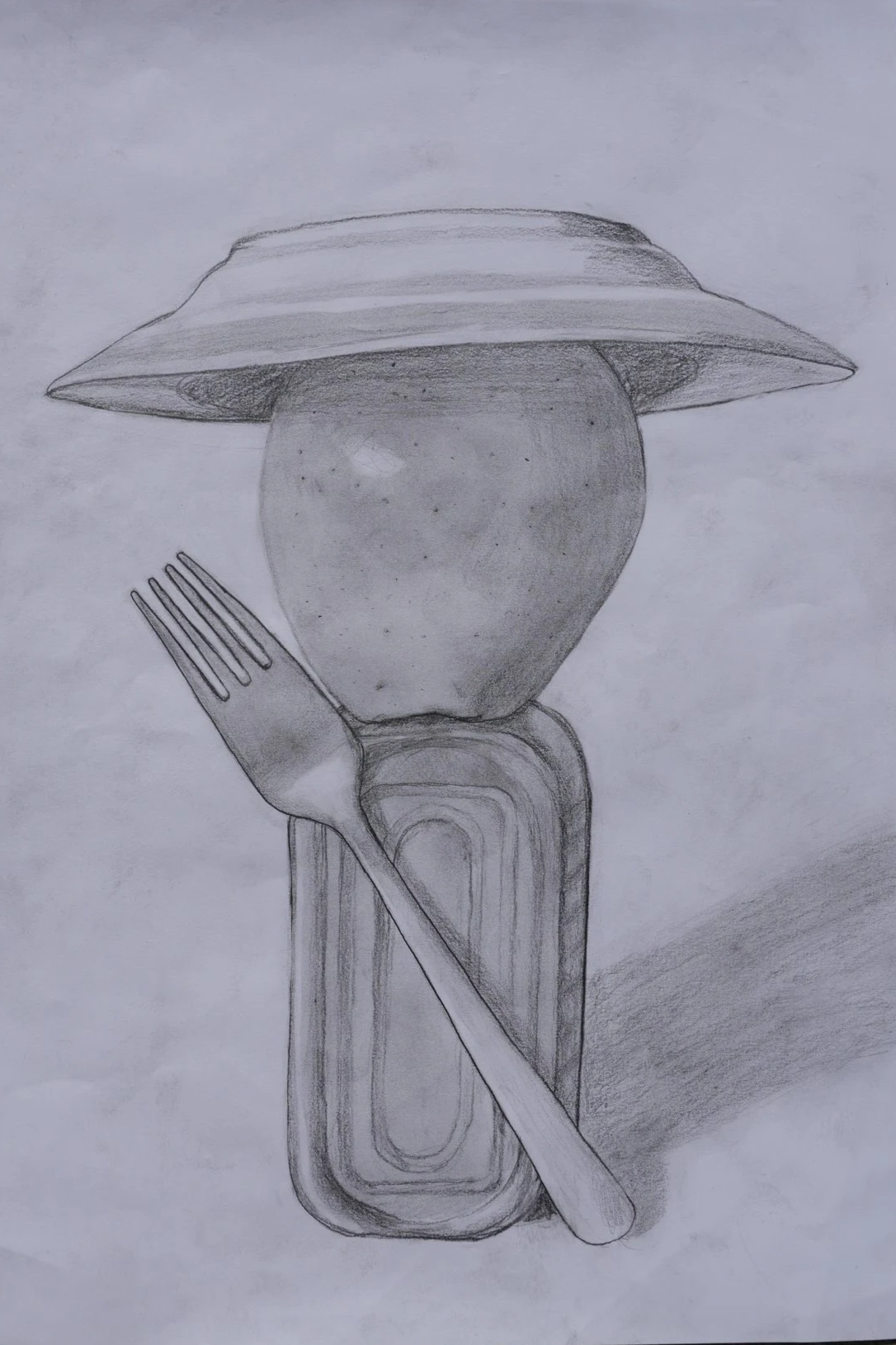 Ce dessin d’observation à été fait dans le cadre du concours d’entrée de l’ÉIKON. L’exercice était de faire une composition avec une boîte de sardine, une fourchette, une pomme et une assiette.