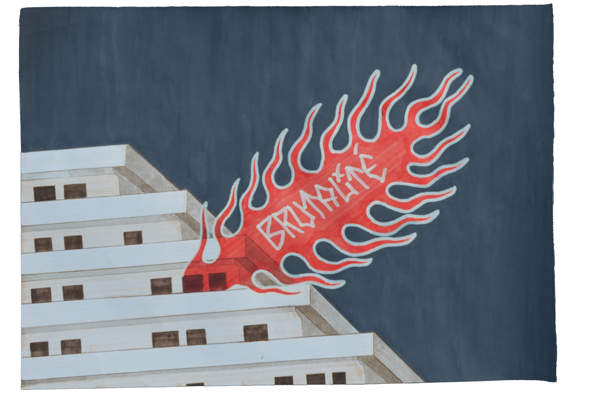 Dessin traditionnel sur le thème du brutalisme, réalisé dans le cadre du concours d’entrée de l’ÉIKON